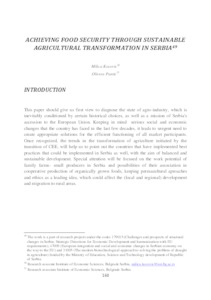 Kočović, Milica and Pantić, Olivera (2014) Achieving food security through sustainable agricultural transformation in Serbia. In: Toward green economy: opportunities and obstacles for Western Balkan countries. Xlibris Publishing, Bloomington, pp. 160-174. ISBN 978-1-503532-946