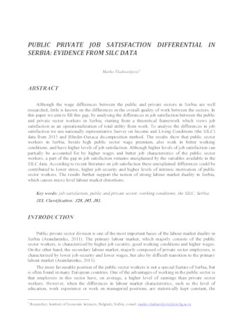 PUBLIC PRIVATE JOB SATISFACTION DIFFERENTIAL IN SERBIA EVIDENCE FROM SILC DATA Marko Vladisavljevic (1).pdf - Published Version Available under License Creative Commons Attribution Non-commercial No Derivatives. Download (768kB) | Preview |
