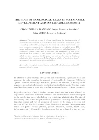 Munitlak Ivanović, Olja and Mitić, Petar (2018) The role of ecological taxes in sustainable development and sustainable economy. In: Sustainable growth and development in small open economies. Institute of World Economics; Centre for Economic and Regional Studies of the Hungarian Academy of Sciences, Budapest, pp. 159-168. ISBN 978-963-301-663-3