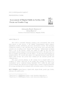workforce in Serbia, with focus on the gender gap. Findings are based on a standardized survey conducted during September 2017, within the pilot study research. Results show that the level of digital skills is Serbia is lagging behind the EU average and that the level of digital skills of Serbian women is lower than men.