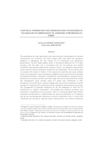 top management, gave answers about ICT assets and investments in their companies. The results of our research suggest that most of the companies in Serbia consider ICT assets and ICT investment as duty imposed by the business environment. The management of selected companies do not see obligation to treat the ICT investments as “regular investments” like building new facilities, purchase new