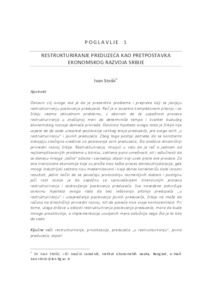 Osnovni cilj ovoga rad je da je prezentira probleme i prepreke koji se javljaju restrukturiranju poslovanja preduzeća. Reč je o izuzetno kompleksnom pitanju i za Srbiju veoma aktuelnom problemu, s obzirom da će uspešnost procesa restrukturiranja u značajnoj meri da determiniše tempo i kvalitet budućeg ekonomskog razvoja domaće privrede. Osnovna hipoteza ovoga rada je Srbija nije uspela da do sada unapredi poslovanje velikog broja preduzeća, pre svega onih „u restrukturiranju“ i javnih preduzeća. Zbog toga postoji potreba da se konstanto izdvajaju značajna sredstva za poslovanje ovih preduzeća, što otežava dinamičniji privredni razvoj Srbije. Restrukturiranja, imajući u vidu da je reč o jednom od najkomplikovanijih problema u biznisu, zahteva puno umešnosti, ali i odlučnosti da se donesu mnoge „teške“ odluke i savladaju otpori koji uvek prate ove procese. Za one tranzicione ekonomije koje su prošle kroz teške proces deindustrijalizacije, gde mnogi industrijski sektora nisu modernizovani i koje danas karakterišu slabi izvozni rezultati, jedini način da se povećaju proizvodnju razmenljivih dobara i postignu jači rast izvoza je da započnu sa sprovođenjem intenzivnijih procesa restrukturiranja i ozdravljenja poslovanja preduzeća. Sve navedeno potvrđuje osnovnu hipoteza ovoga rada da bez rešavanja pitanja preduzeća „u restrukturiranju“ i unapređenja poslovanja javnih preduzeća, Srbija ne može da računa na dinamičniji privredni razvoj, niti da poveća nivo svoje konkurentnost. Pri tome, uloga države u oblasti restrukturiranja poslovanja preduzeća, mora da bude mnogo proaktivnija, a implementacija usvojenih mera odlučnija nego što je to bila do sada.