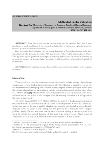 Horvátová, Eva (2010) Method of Banks Valuation. Economic analysis, 43 (1-2). pp. 50-60. ISSN 1821-2573