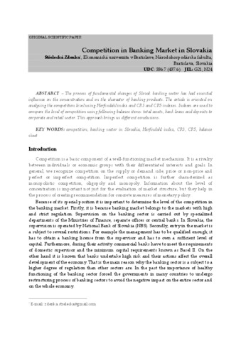 Střelecká, Zdenka (2010) Competition in Banking Market in Slovakia. Economic analysis, 43 (1-2). pp. 117-125. ISSN 1821-2573