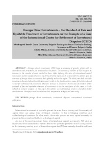 movements and its manifestations in the first part of the paper, in its second part the authors give an overview of foreign direct investment, both globally and in the region. The third part deals with the investment disputes before the arbitration court, while in the fourth section, a case of the International Center for Settlement of Investment Disputes (ICSID) is presented. As the case of violation of the principle of fair and equitable treatment of investments is in the main focus of this paper, it is the subject of а deeper analysis. In this paper, the authors use methodology which is characteristic for social sciences: descriptive and historical method, comparative analysis and case study.