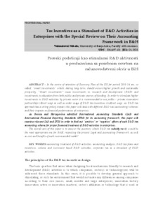 As Bosnia and Herzegovina admitted International Accounting Standards (IAS) and International Financial Reporting Standards (IFRS) for its accounting framework, this paper will examine relevant IAS and IFRS in order to find out “positive” or “negative” effects of each R&D tax
