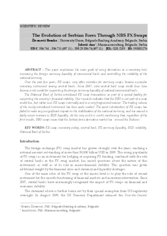 Živanović, Branko and Jolović, Ana (2012) The Evolution of Serbian Forex Through NBS FX Swaps. Economic analysis, 45 (3-4). pp. 14-30. ISSN 1821-2573