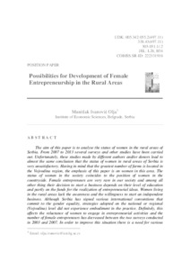 Munitlak Ivanović, Olja (2016) Possibilities for Development of Female Entrepreneurship in the Rural Areas. Journal of Women's Entrepreneurship and Education (1-2). pp. 79-96. ISSN 1821-1283