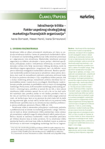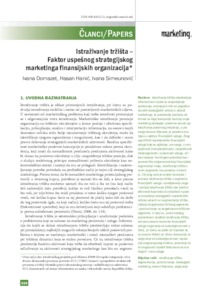 Domazet, Ivana and Hanić, Hasan and Simeunović, Ivana (2013) Istraživanje tržišta – Faktor uspešnog strategijskog marketinga finansijskih organizacija. Marketing : časopis Jugoslavenskog udruženja za marketing JUMA, 44 (4). pp. 310-320. ISSN 0354-3471
