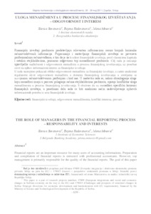 menadžmenta u procesu finansijskog izveštavanja. S obzirom da su menadžeri specifični korisnici