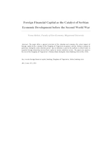 foreign capital on the economy of the Kingdom of Yugoslavia in general, and the Serbian economy in