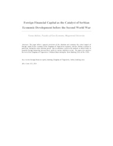 Aleksić, Vesna (2010) Foreign financial capital as the catalyst of Serbian economic development before the Second World War. In: Economic and Financial Stability in SE Europe in a Historical and Comparative Perspective : conference proceedings / Forth Annual Conference of South-Eastern European Monetary History Network (SEEMHN). Narodna banka Srbije, Beograd, pp. 315-333. ISBN 978-86-85277-28-3