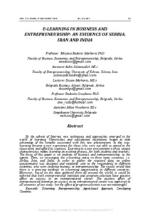 Radović-Marković, Mirjana and Salamzadeh, Aidin and Marković, Dušan and Grozdanić, Radmila and Vučeković, Miloš (2012) E-learning in business and entrepreneurship: an evidence of Serbia, Iran and India. In: 1st International Conferenc Employment, Education and Enterpreneurship. Faculty of Business Economics and Enterpreneurship, Belgrade, pp. 13-31. ISBN 978-86-6069-082-3