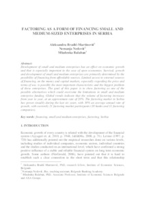 Bradić-Martinović, Aleksandra and Nedović, Nemanja and Balaban, Mladenka (2015) Factoring as a form of financing small and medium-sized enterprises in Serbia. In: New еconomic policy reforms. Belgrade Banking Academy, Belgrade, pp. 344-356. ISBN 978-86-7852-036-5